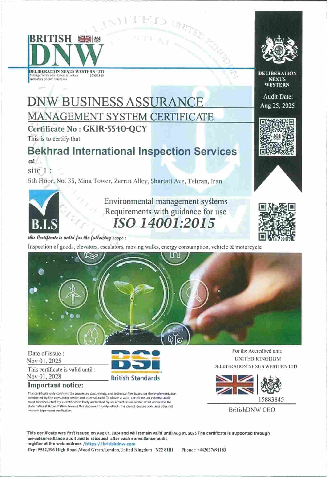 کسب رتبه نخست شرکت خدمات بازرسی بینالمللی بخرد در حوزه بازرسی کالا در رتبهبندی سازمان ملی استاندارد ایران